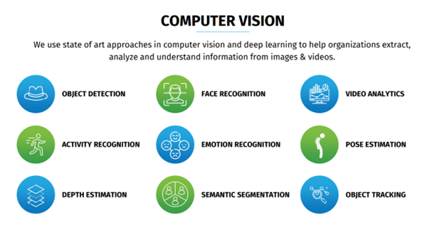 We apply AI to design & develop advanced solutions to complex, challenging problems across industries - retail, healthcare, manufacturing, media, sports, telecom, & IoT. We are active in a wide variety of research areas with a major focus on computer vision and NLP.